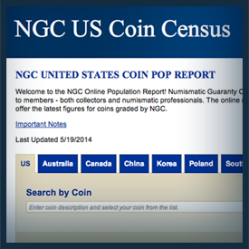 A database for comparing and verifying the NGC description and grade of any NGC-certified coin. -