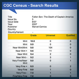 Detailed report of the comics, magazines and lobby cards graded by CGC, with the total number of CGC-certified examples in each grade. -
